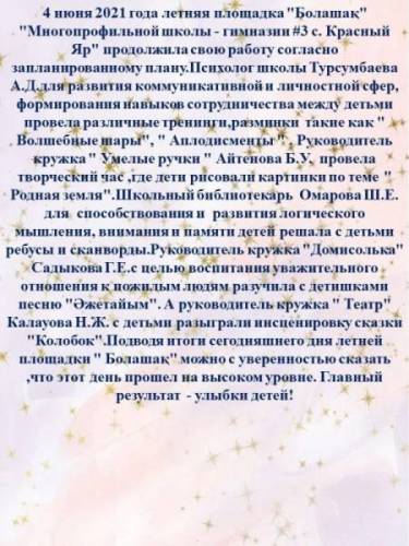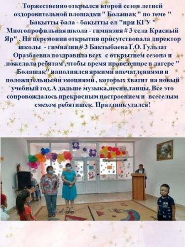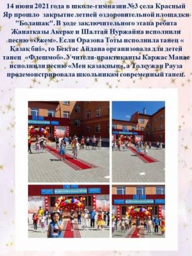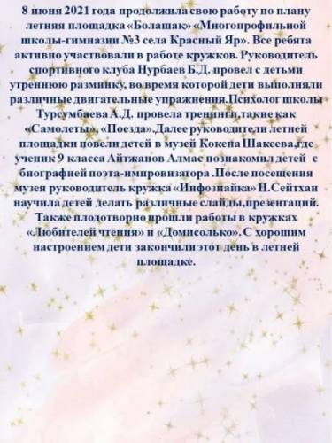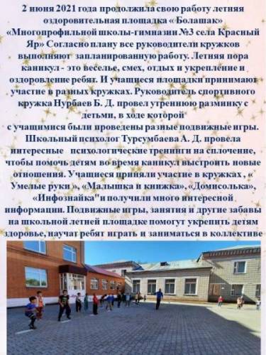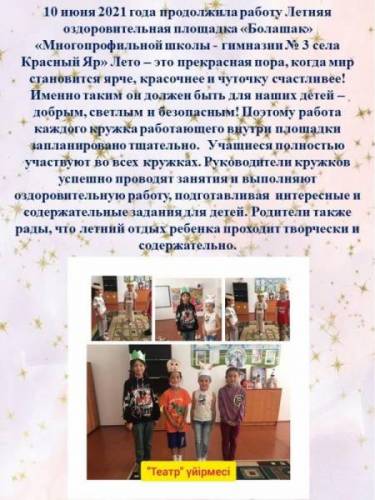 "БОЛАШАҚ - 2021" жазғы сауықтыру алаңы