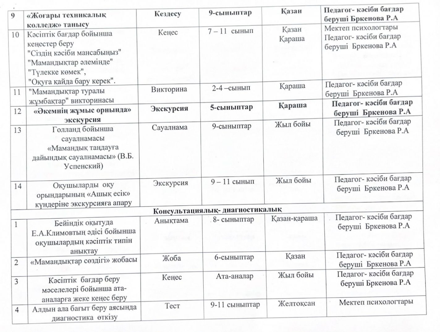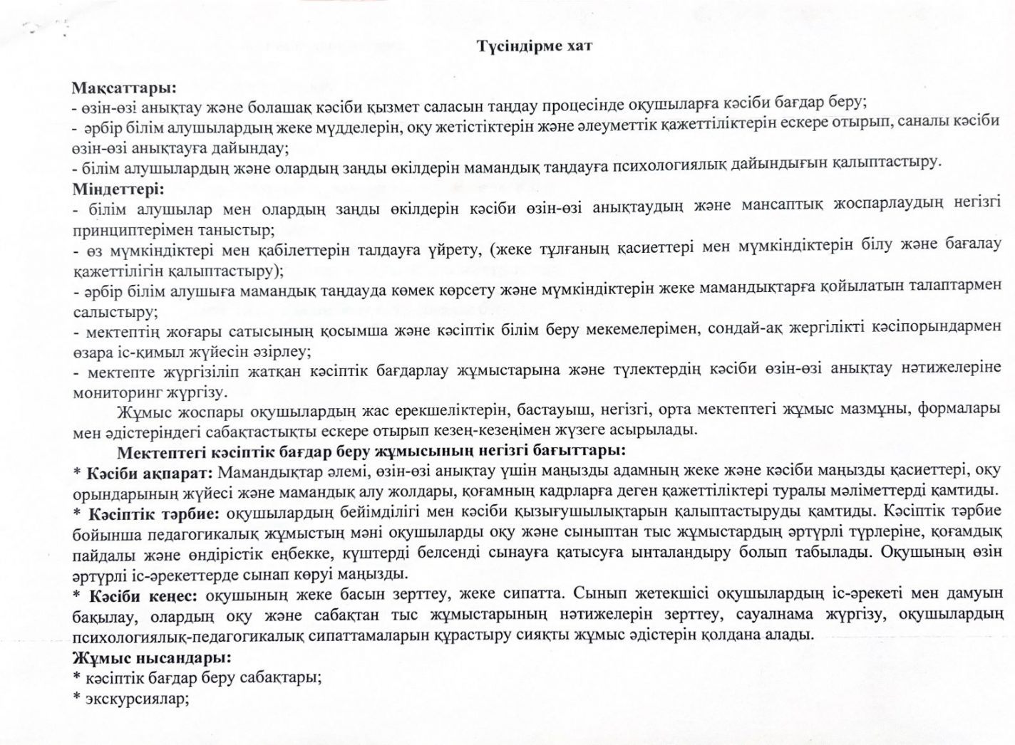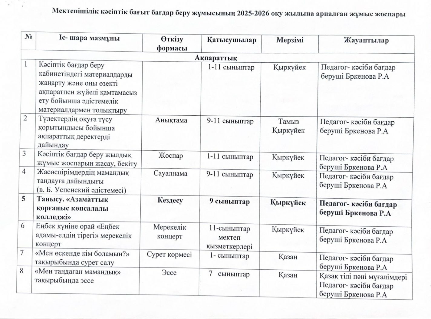 Кәсіптік бағдар беру 2025-2026 оқу жылы