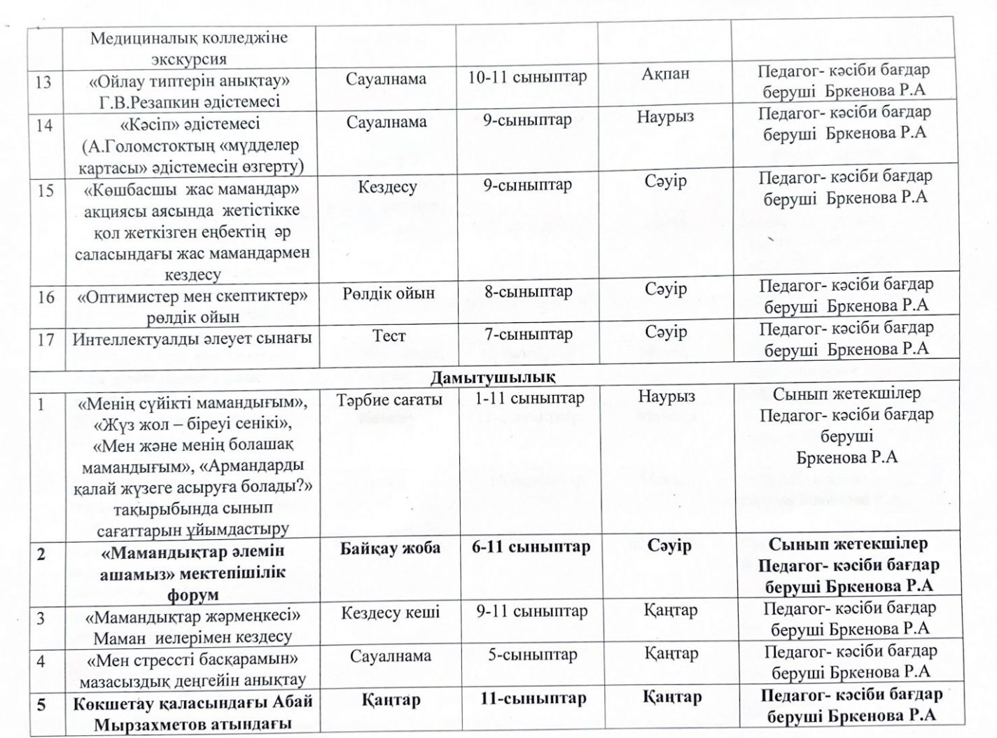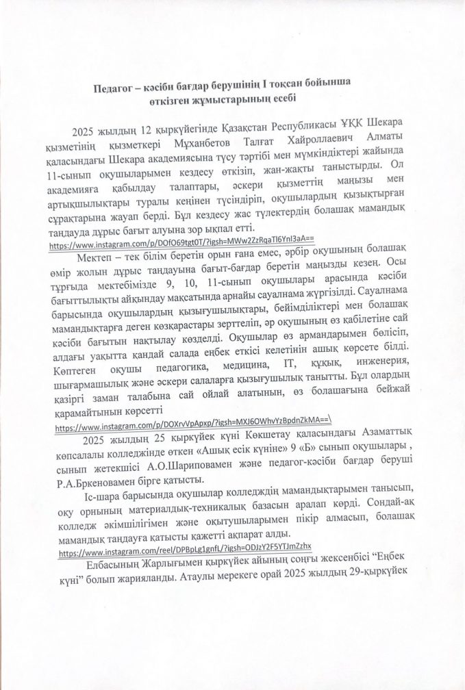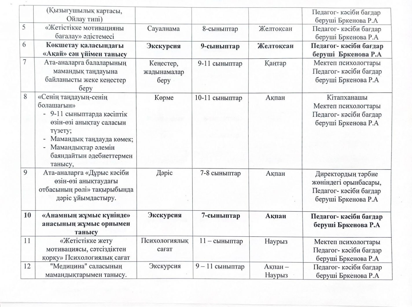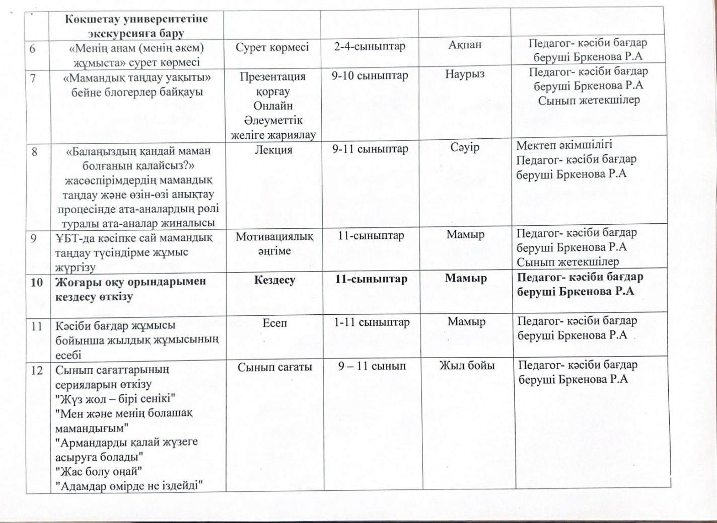Кәсіптік бағдар беру 2025-2026 оқу жылы