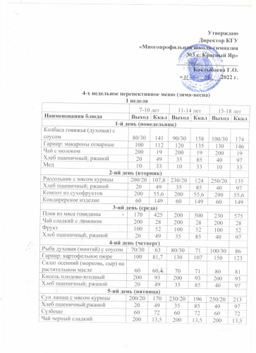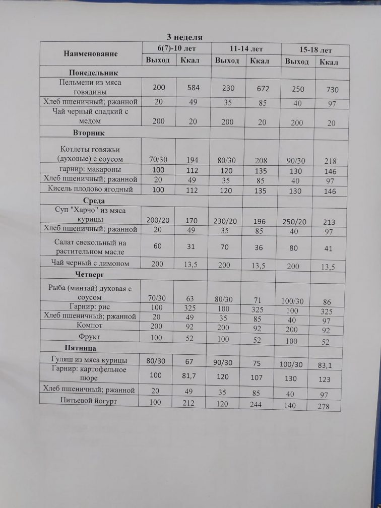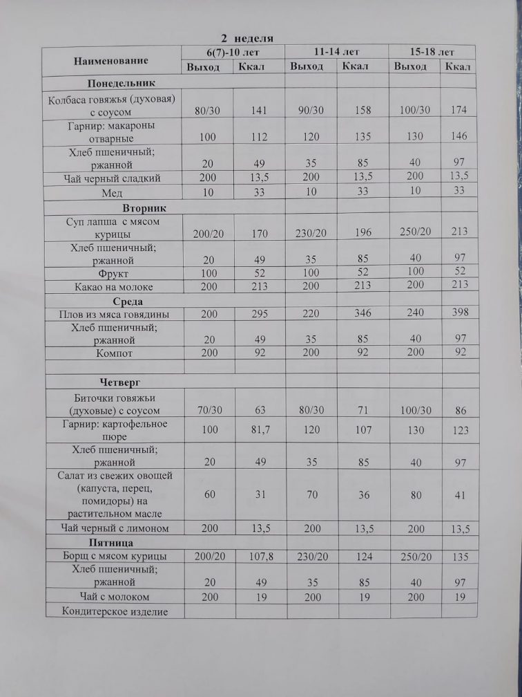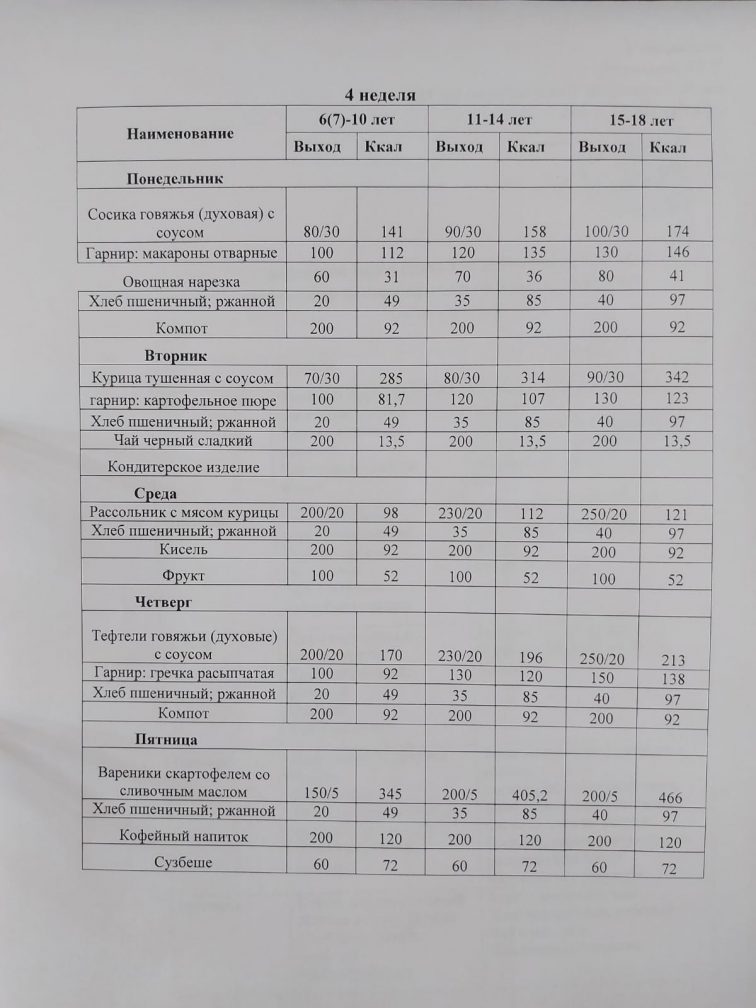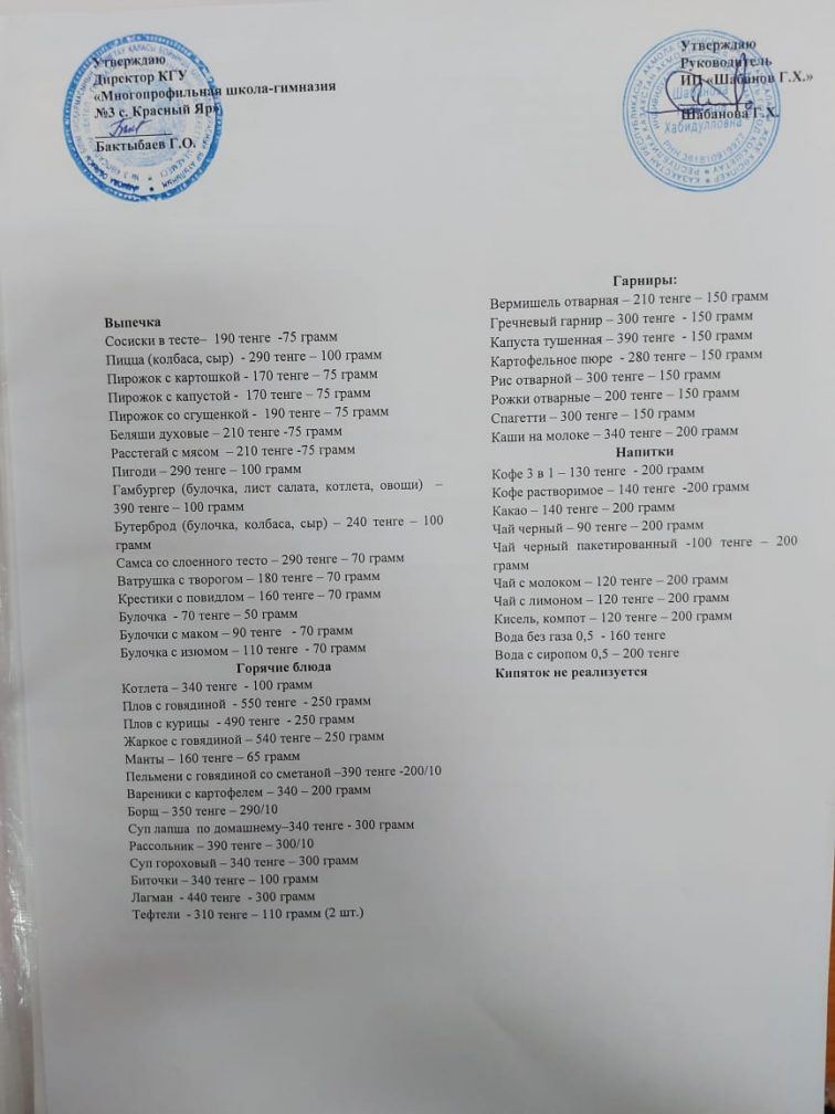 Ас мәзірі прейскурант