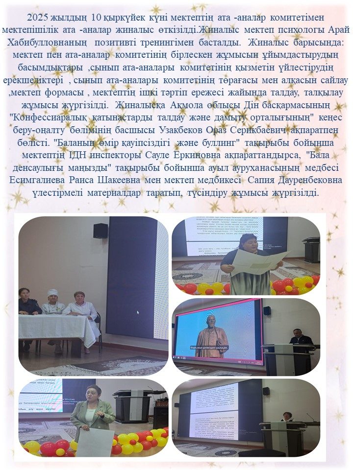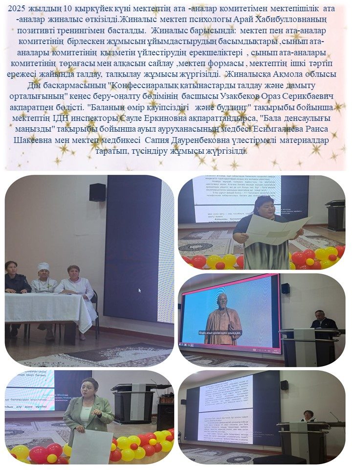 1 сынып ата-аналарымен “Бала өмірінің қауіпсіздігі -біз үшін маңызды” тақырыбында ата- аналар жиналысы өтті.