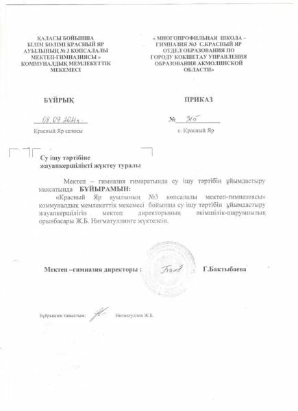 Ауыз су ішу режимін ұйымдастыру туралы бұйрық