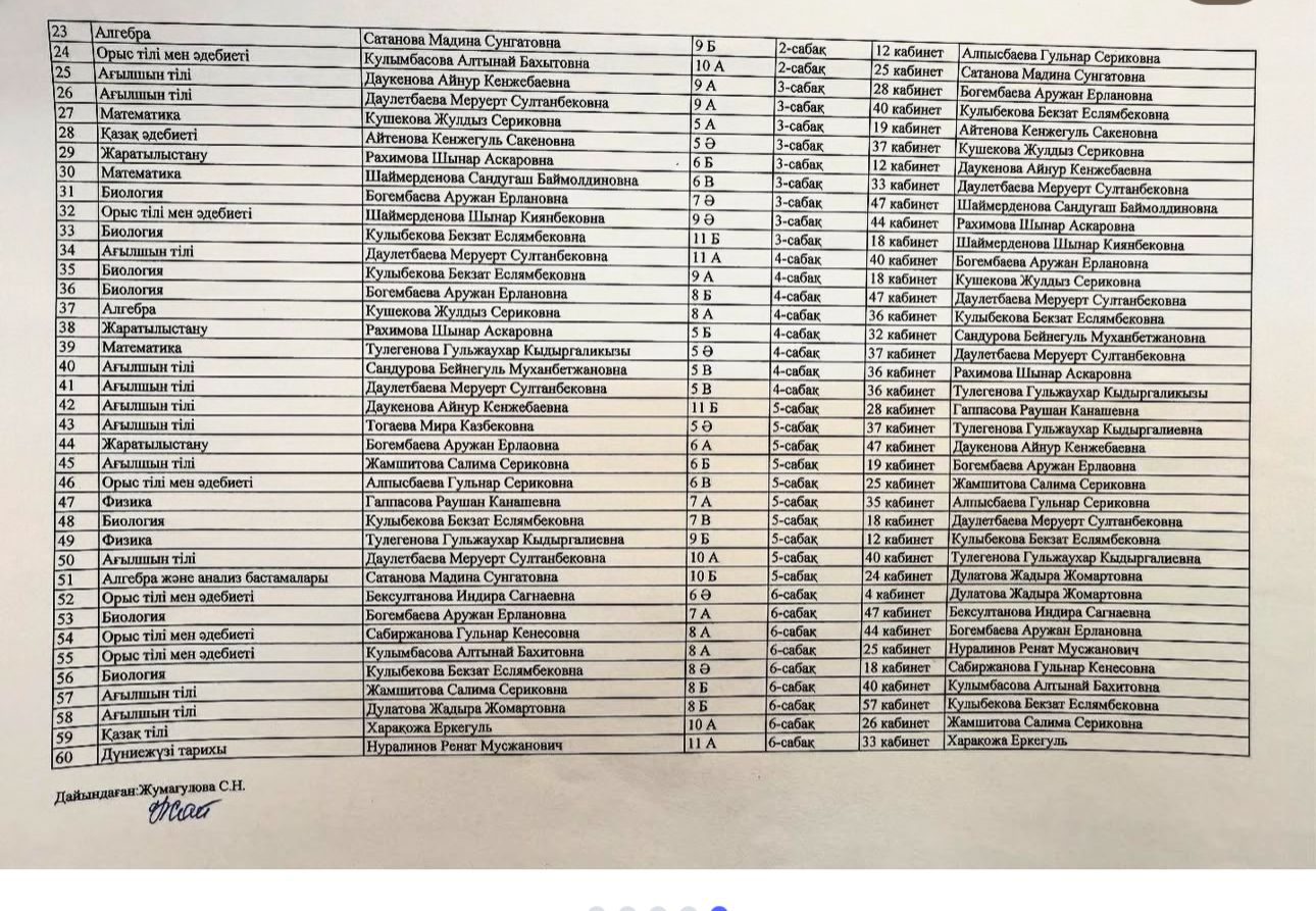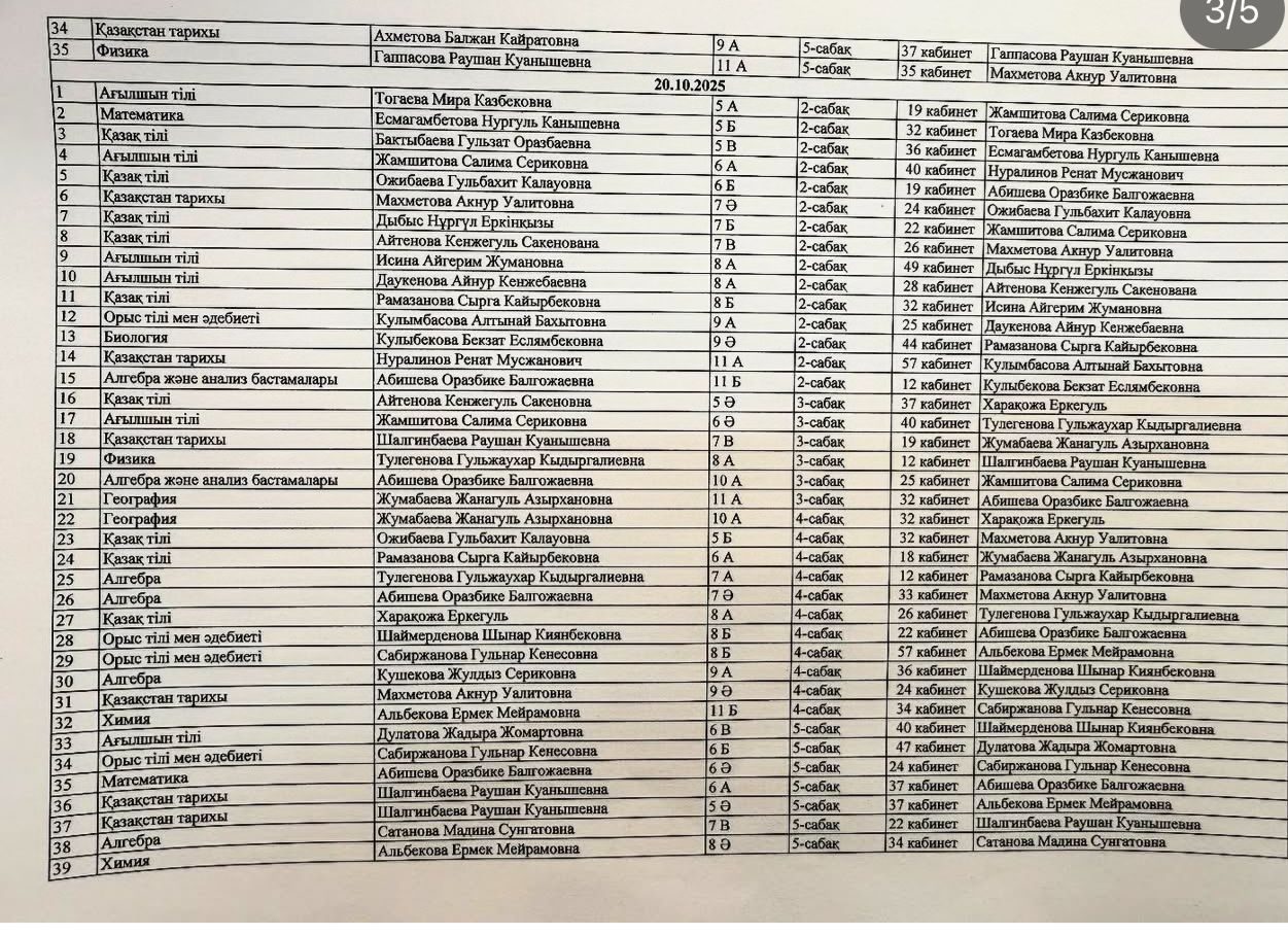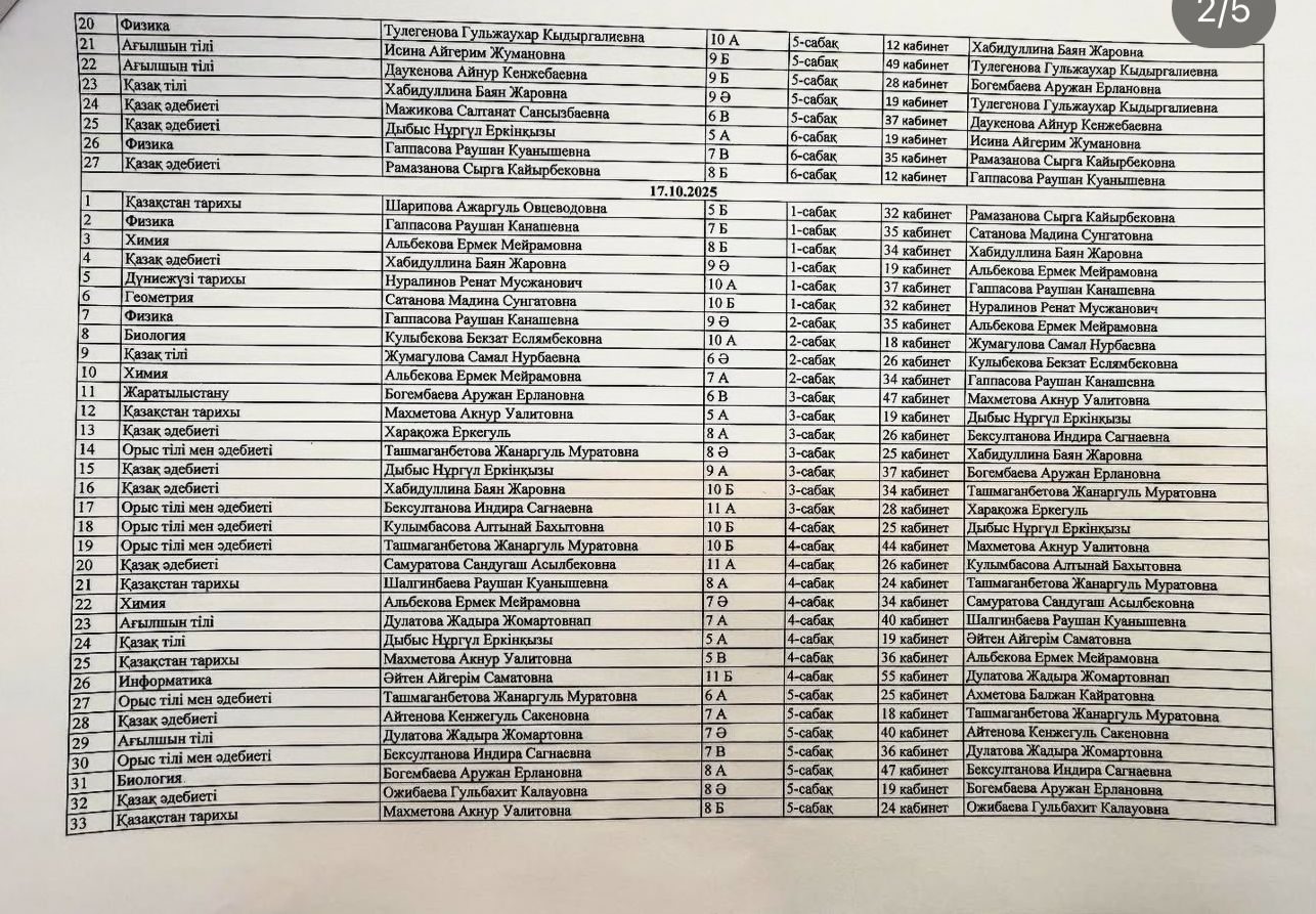 2025-2026 оқу жылының 1- тоқсандағы ТЖБ кестесі