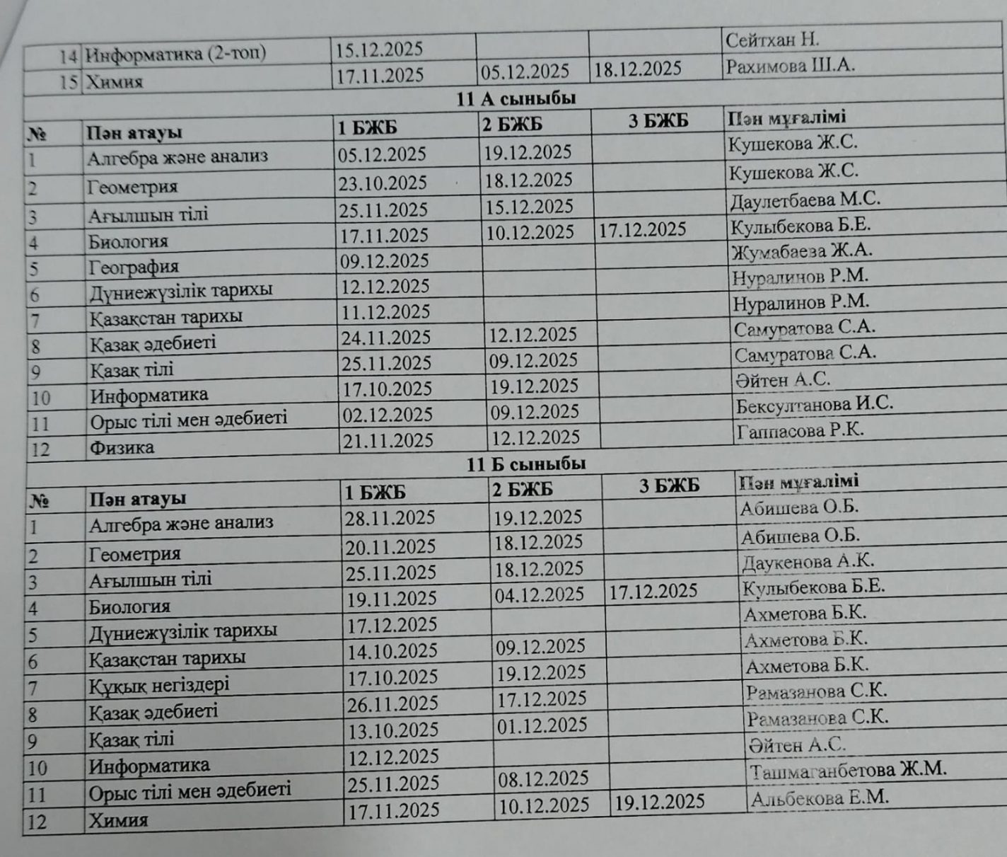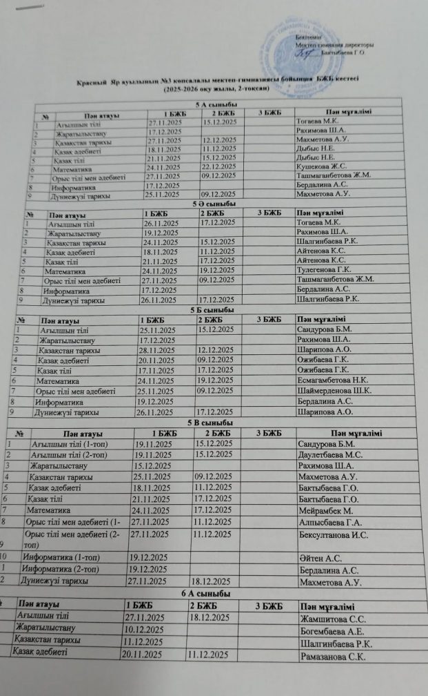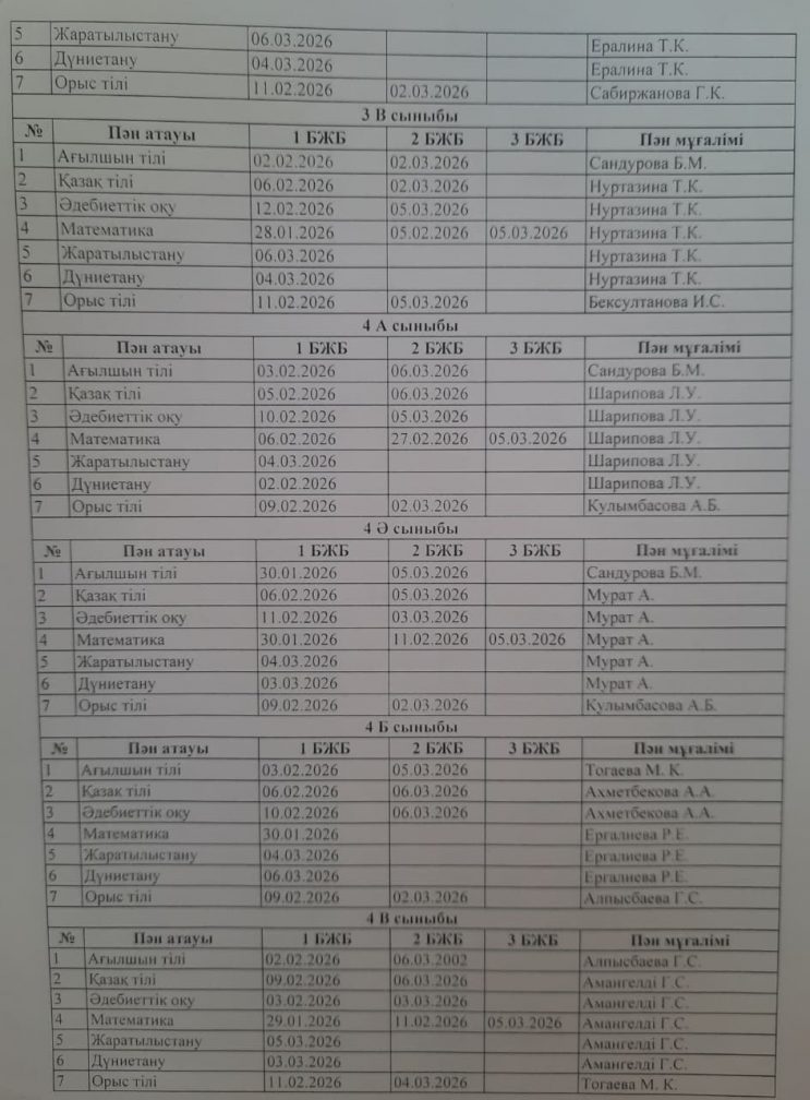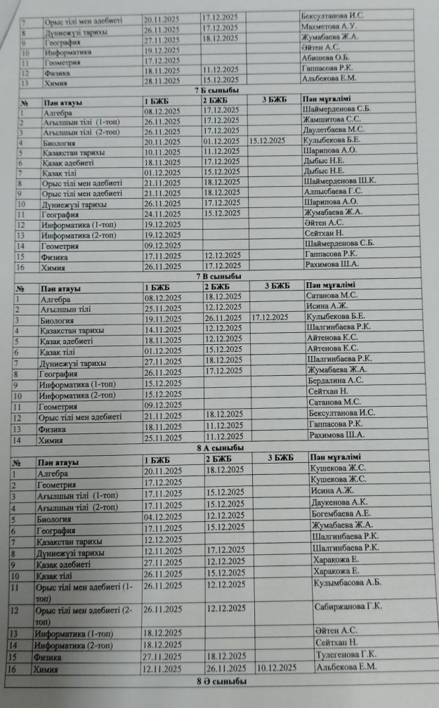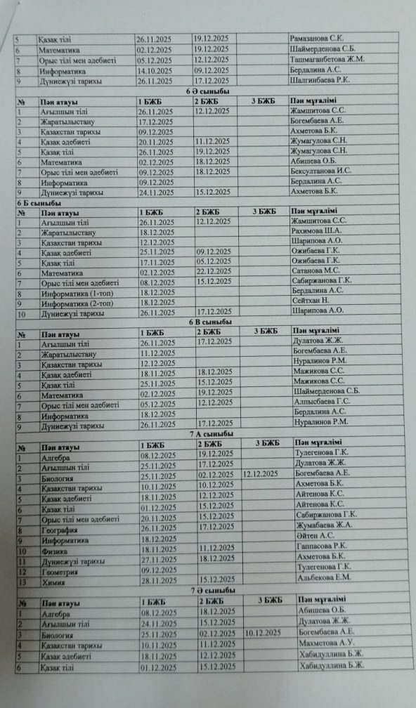 2025-2026 оқу жылының БЖБ өткізілу кестесі.