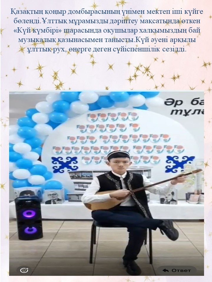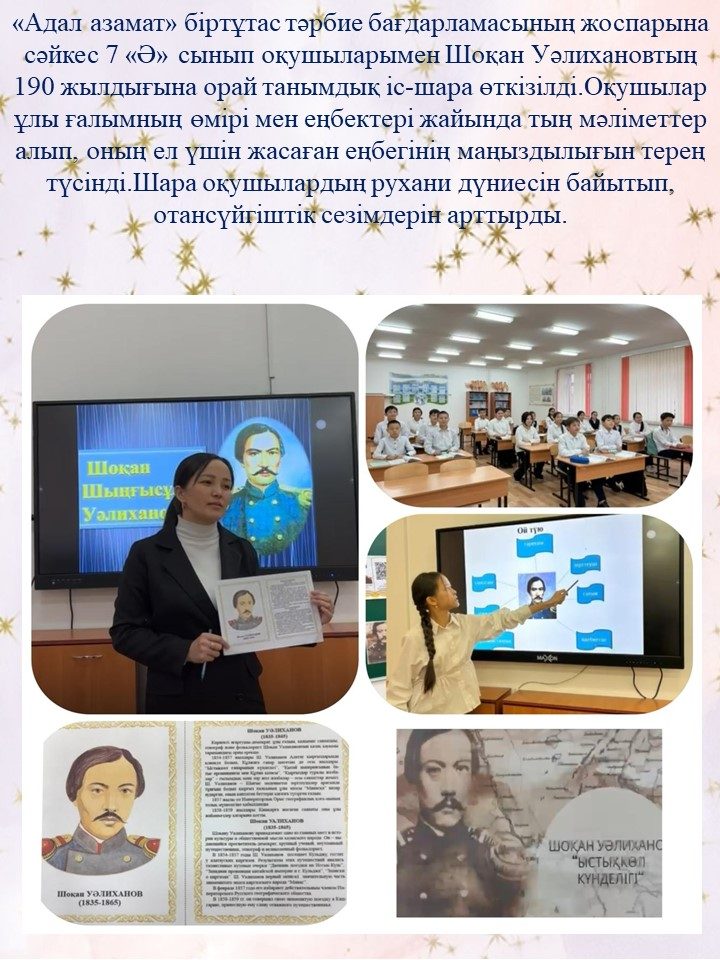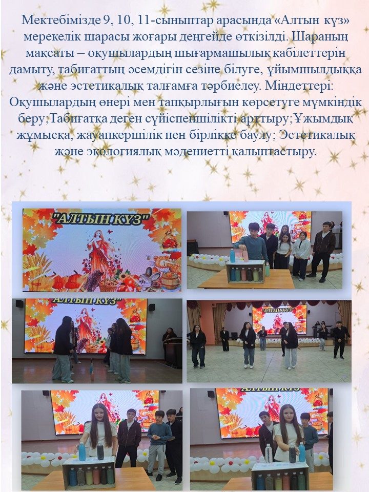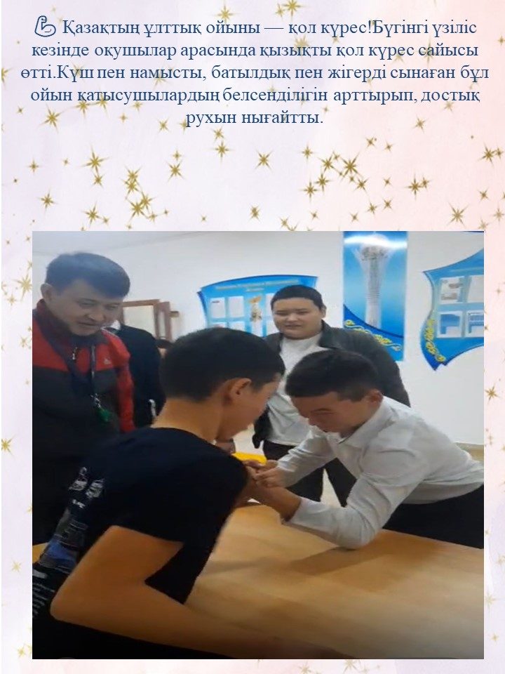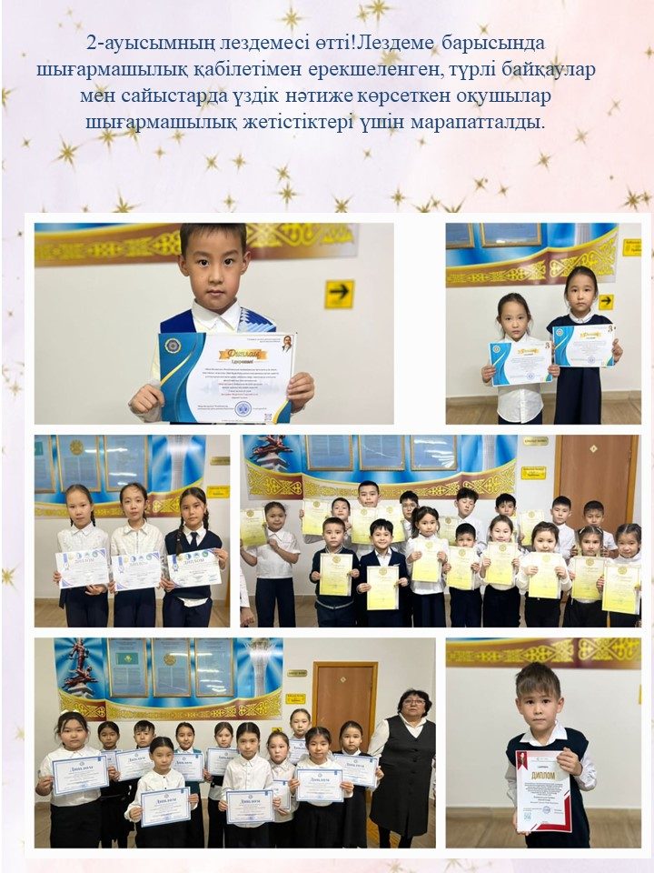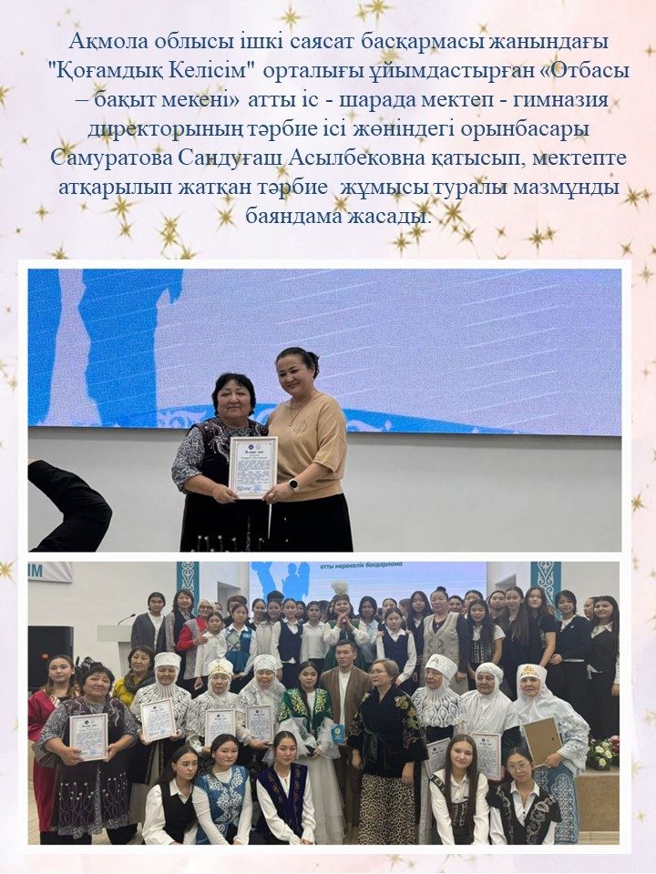 2024 жылдың 23 – 24 желтоқсан күні Көкшетау қаласындағы «Bolashaq sarayi» "Қош келдің , жаңа жыл!" атты Президент шыршасы өтті. Шыршаға мектебіміздің мақтанышы, математика пәні бойынша өткен олимпиада және қазақтың ұлттық ойыны тоғызқұмалақ сайысының жеңімпазы 6 «А» сынып оқушысы Ахметов Сардар қатысып, 120 мың теңге көлемінде қаржылай және тәтті сыйлықтар алып, жақсы көңіл күймен қайтты.