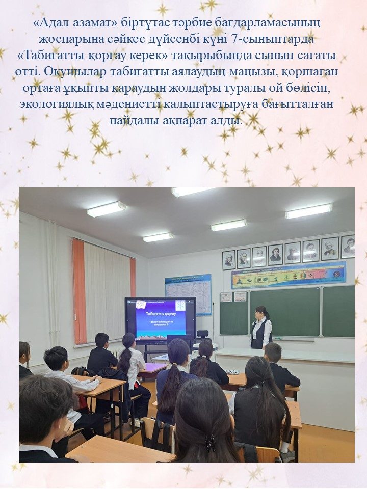 #Адал ұрпақ# клубының жоспарына сәйкес адалдық сағаттары өтті