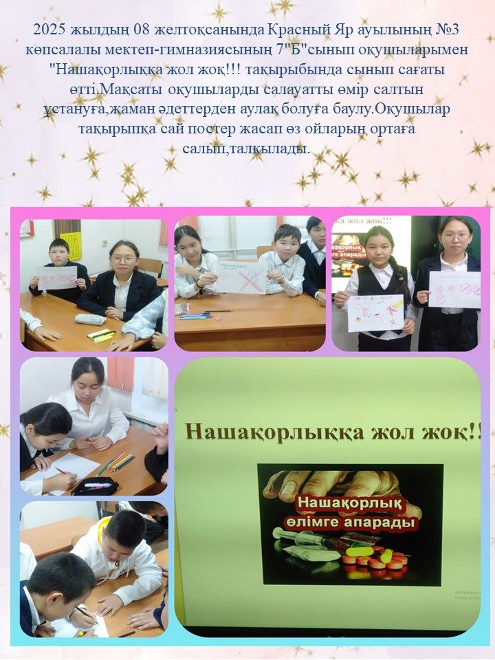Красный Яр ауылының №3 көпсалалы мектеп -гимназиясынның 9-11 сынып оқушыларымен "Зерделі ұрпақ орталығынан" маманы А.Наурызбаев "Жастар және заң" тақырыбында дәріс берді.