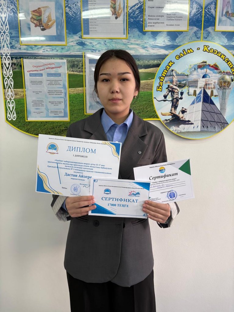 Мектебіміздің мақтанышы, Жанатқазы Ақерке 2025-2026 оқу жылында 7-8 сыныптар арасында жалпы білім беретін пәндер бойынша республикалық олимпиаданың қалалық кезеңінен физика пәнінен І орын иеленді. Ақерке мақсатқа жету жолындағы талпынысы мен жауапкершілігінің...