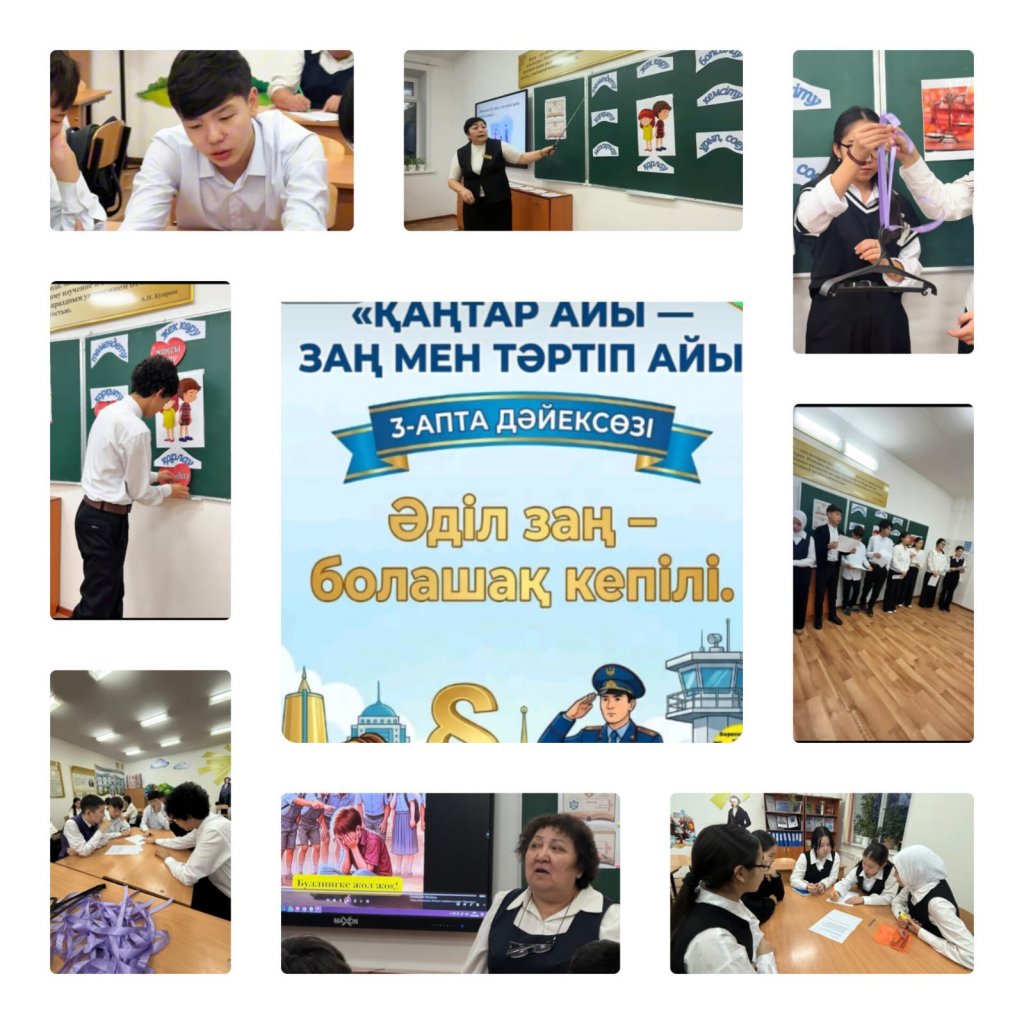 «Адал азамат» Біртұтас тәрбие бағдарламасының қаңтар айына жоспарланған “Заң және тәртіп» айлығы барысында оқушылардың құқықтық санасын, буллинг мәселесі мен оның салдарын түсіну және буллингтің алдын алу іскерлігін қалыптастыру мақсатында 9 «А»...