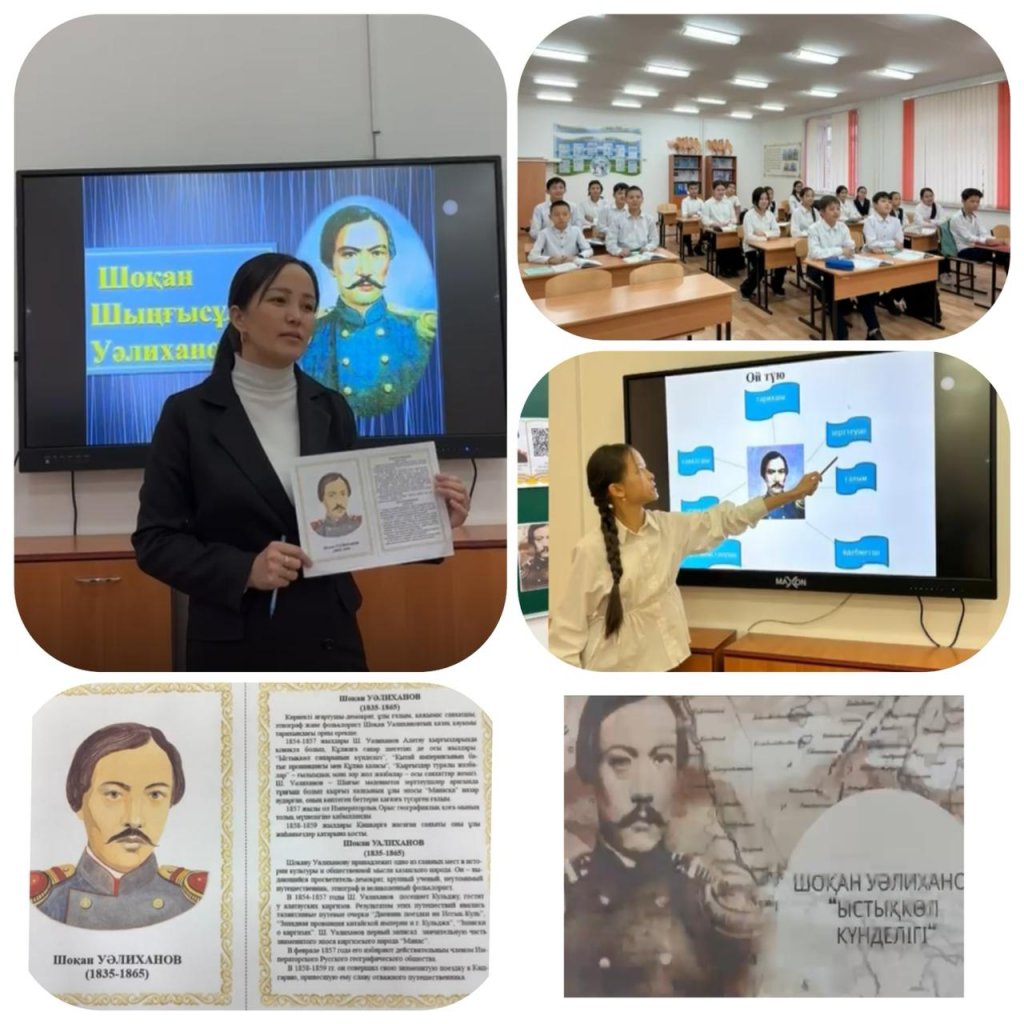 «Адал азамат» біртұтас тәрбие бағдарламасының жоспарына сәйкес 7 «Ә» сынып оқушыларымен Шоқан Уәлихановтың 190 жылдығына орай танымдық іс-шара өткізілді.