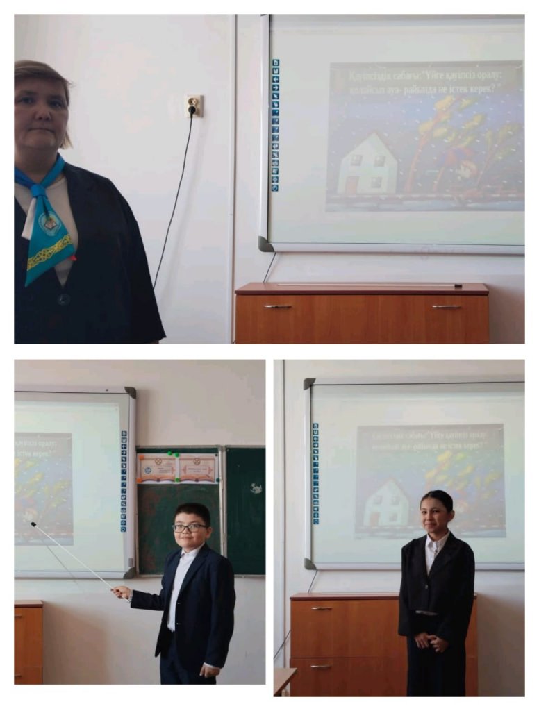 Сабақ барысында оқушыларға қарлы боран, көктайғақ, қатты жел және аяз кезінде өзін-өзі ұстау ережелері түсіндірілді. Жолда абай...
