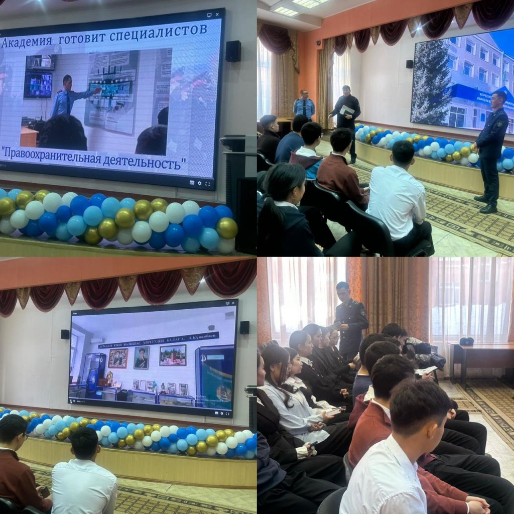 11-сынып оқушыларына кәсіби бағдар беру үшін Қазақстан Республикасы Ішкі істер министрлігі ҚАЖК №7 мекемесінің өкілі Успанов Ж.С. келіп, кездесу өткізді.