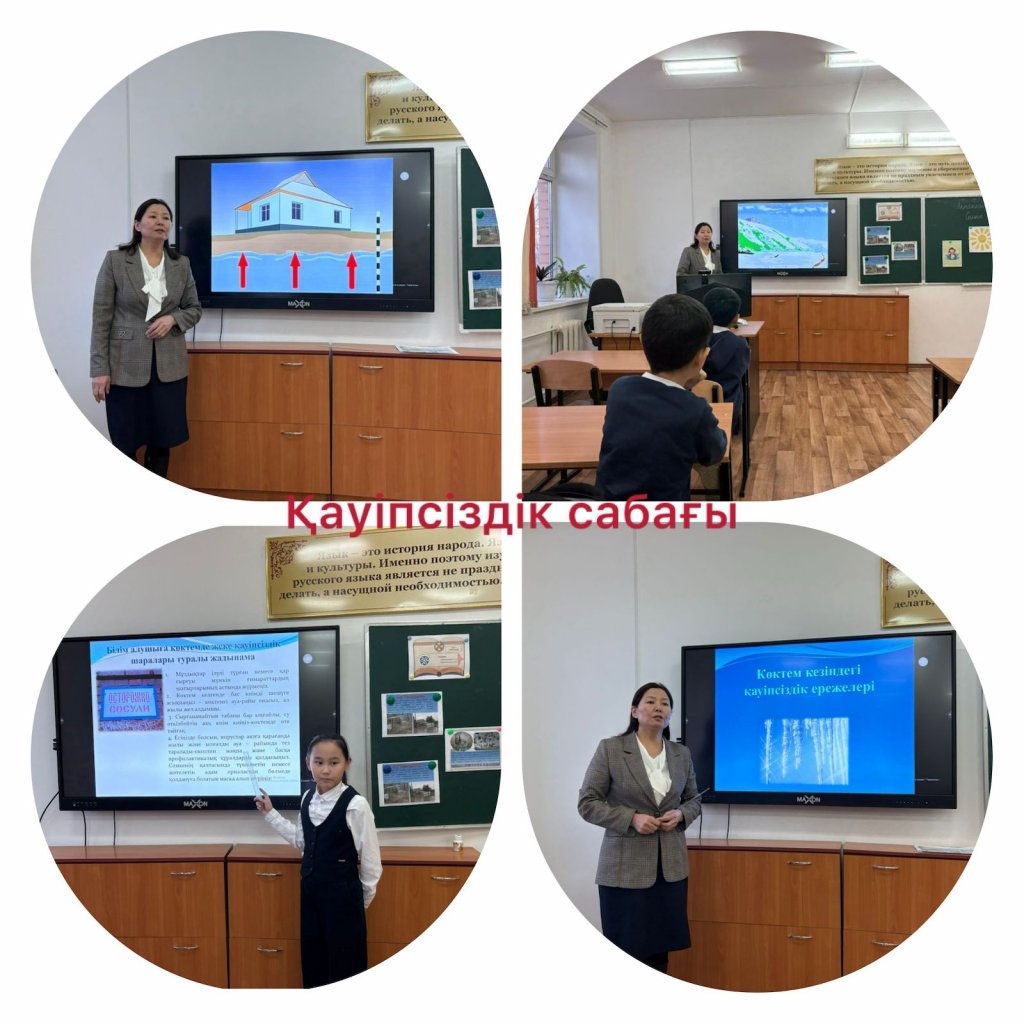 Красный Яр ауылының #3 көпсалалы мектеп- гимназиясының 4 "А" сынып жетекшісі Ләззат Өмірбекқызы оқушылармен "Көктемгі су тасқыны және мұздың түсуі кезіндегі қауіпсіздік ережелер" тақырыбында қауіпсіздік сабағын өткізді.