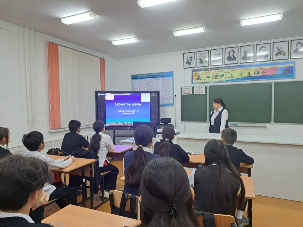 «Адал азамат» біртұтас тәрбие бағдарламасының жоспарына сәйкес дүйсенбі күні 7-сыныптарда «Табиғатты қорғау керек» тақырыбында сынып сағаты өтті. Оқушылар табиғатты аялаудың маңызы, қоршаған ортаға ұқыпты қараудың жолдары туралы ой бөлісіп, экологиялық...
