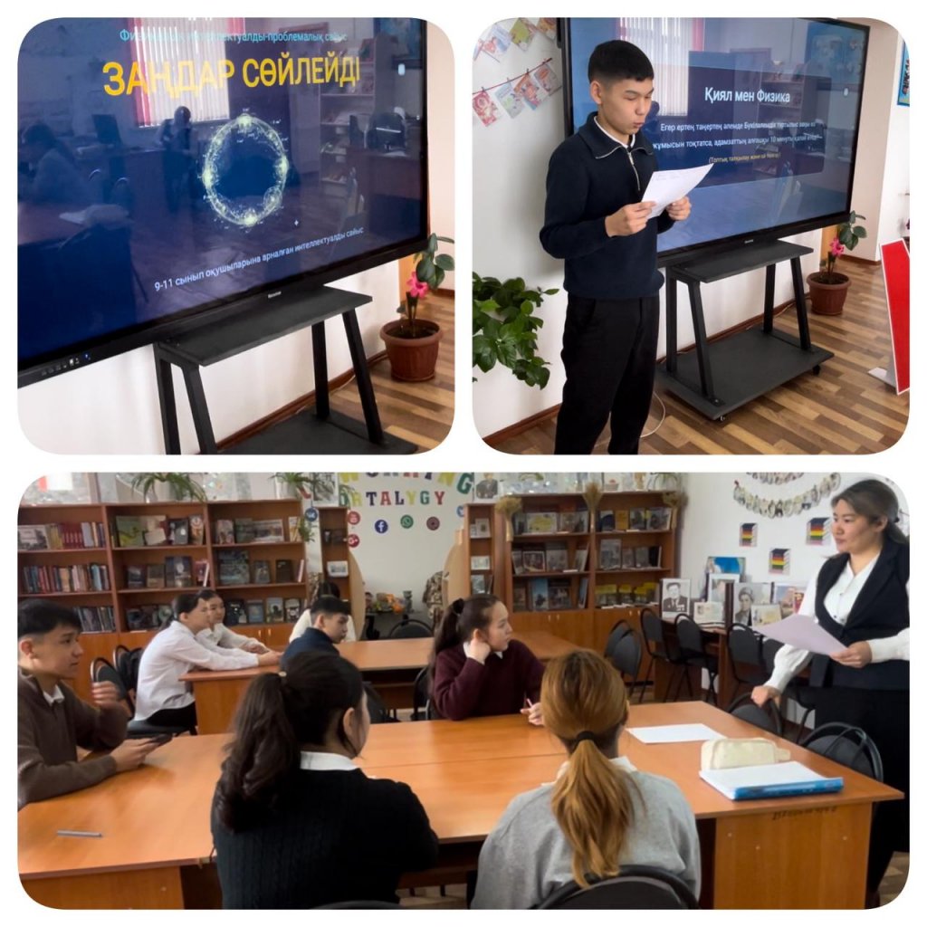 18 ақпан күні математика, физика, информатика пәндер апталығының жоспарына сәйкес 9-сынып оқушыларымен “Заңдар сөйлейді” интеллектуалдық сайысы өткізілді.