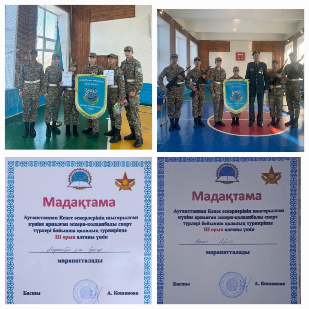 Ауғаныстаннан Кеңес әскерлерінің шығарылған күніне орай ұйымдастырылған әскери-қолданбалы спорт түрлері бойынша қалалық турнирде мектебіміздің «Жас Ұлан» патриоттық клубының мүшелері Маратбекұлы Ернар мен Даян Ләйлә жүлделі III орынға ие болды 🏅
