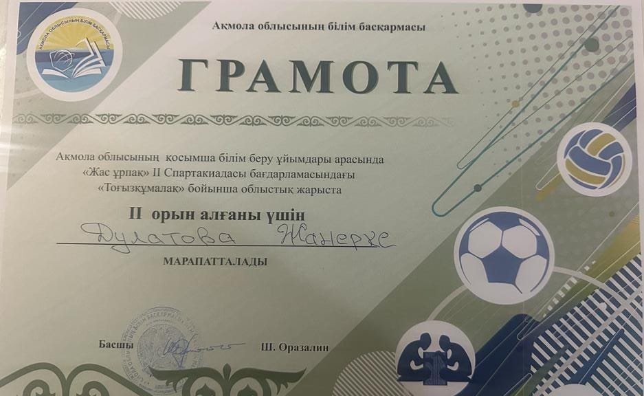 Футбол шеберлігінің жоғары деңгейі,командаға адалдығы және "SPORTING" және "ALTAIR" футбол орталықтарының филиалдары арасында "BASTAY LIGA"турнирінде жеңіске ұмтылысы үшін Ашимов Айбек марапатталды.