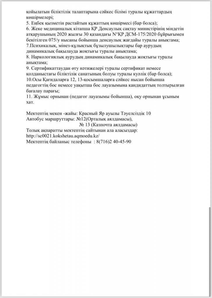 Толық ақпаратты мектептің сайтынан ала аласыздар: http://sc0021.kokshetau.aqmoedu.kz/