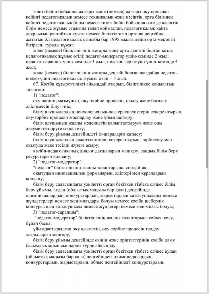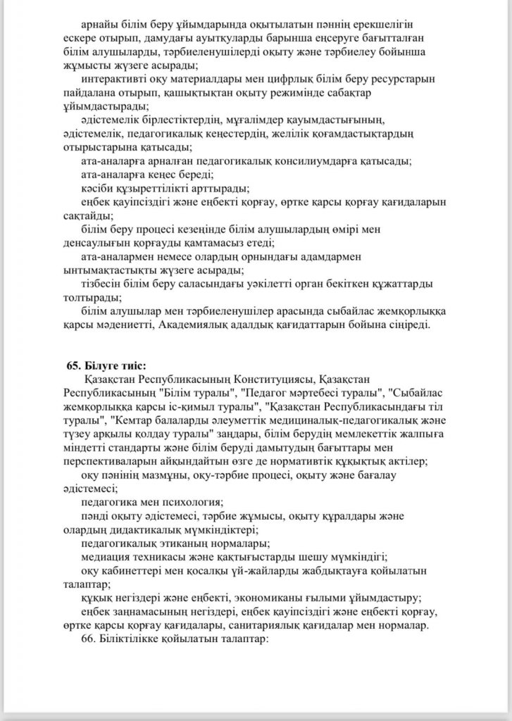 "педагог" біліктілігінің жалпы талаптарына, сондай-ақ:
