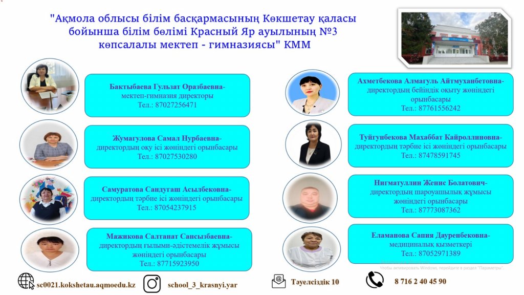 Коммунальное Государственное учреждение "Многопрофильная школа  - гимназия №3 села Красный Яр отдела образования по городу Кокшетау управления образования Акмолинской области"