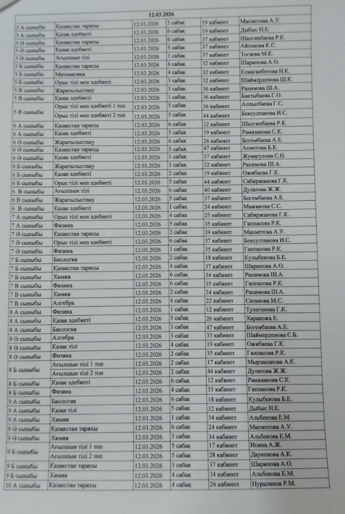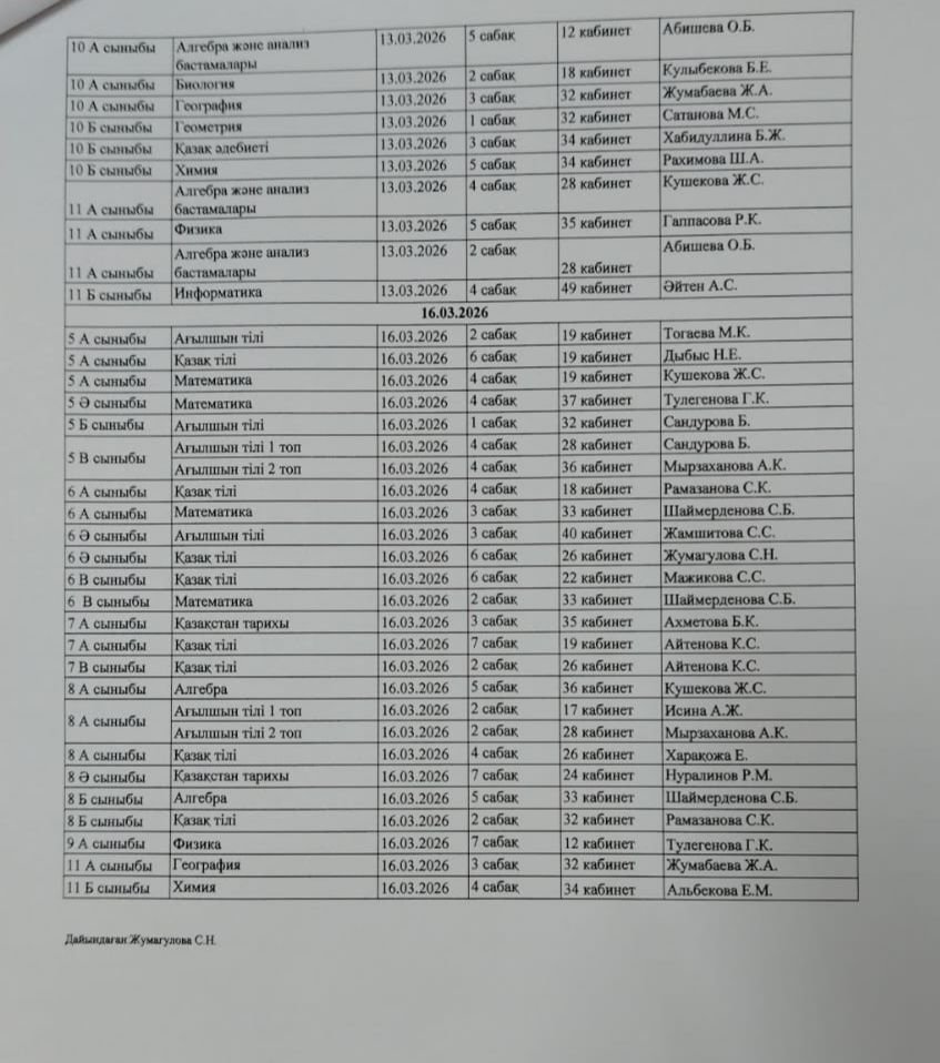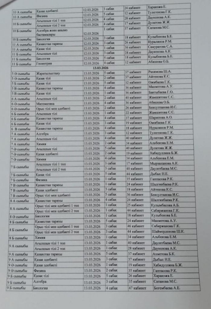 2025-2026 оқу жылының 3-тоқсанындағы ТЖБ өткізілу кестесі.