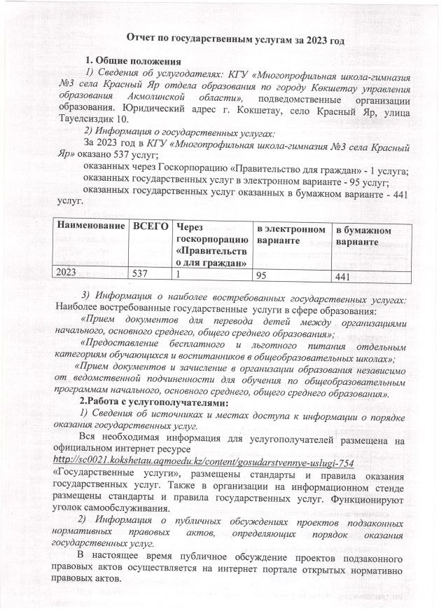 Мемлекеттік көрсетілген қызметтер бойынша 2023 жылға арналған есеп